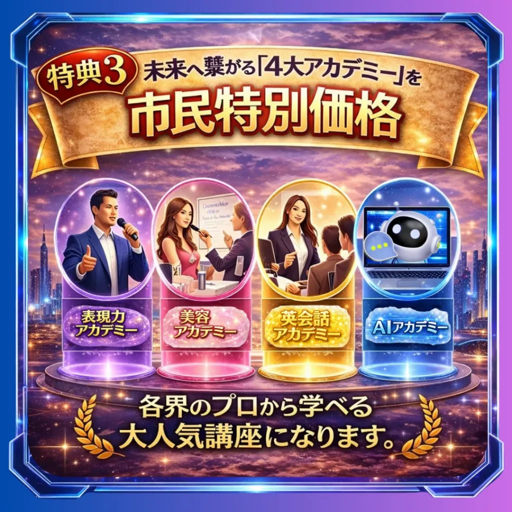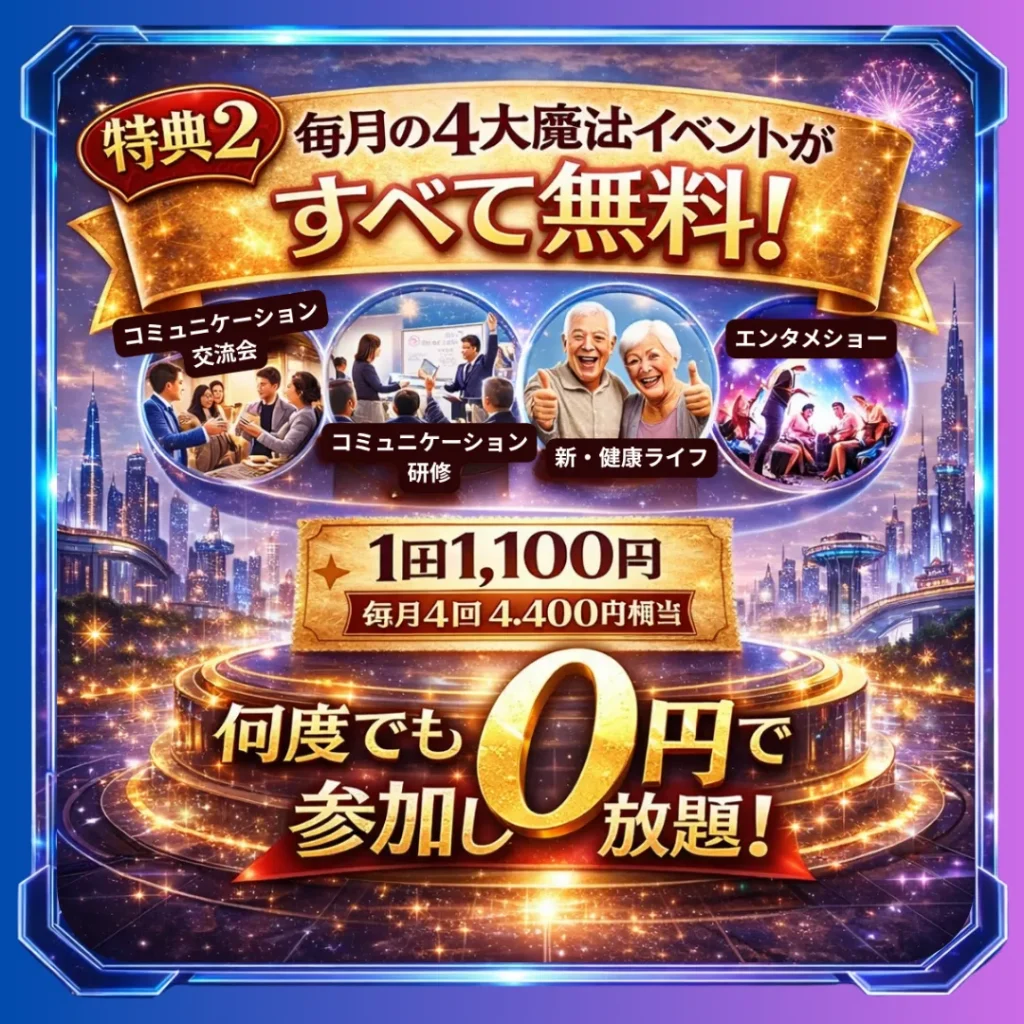魔法市民になると…イベントに無料で参加できます。全国・世界に広がる仲間たちと繋がり、自分自身も「ワクワク魔法市民」になれる場所。今回は、皆様にこれまでにない特大のワクワクをお届けするため実質無料以上となる超・超お得な入会特典をご用意しました!