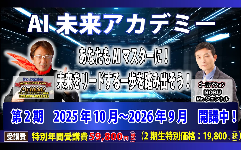 AIを活用し、発信やビジネスに活かせるスキルを学んで未来の可能性を広げましょう。