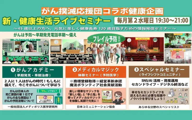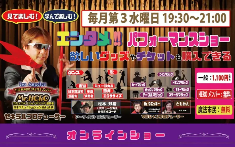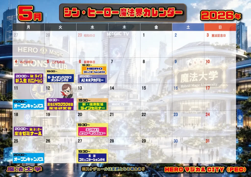 毎週水曜日、魔法の街で4つのイベントを開催中。交流・健康・エンタメ・学びを通して、全国・世界の仲間とオンラインでつながれます。