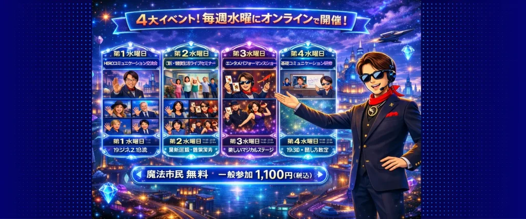 魔法市民になると…イベントに無料で参加できます。全国・世界に広がる仲間たちと繋がり、自分自身も「ワクワク魔法市民」になれる場所。今回は、皆様にこれまでにない特大のワクワクをお届けするため実質無料以上となる超・超お得な入会特典をご用意しました!